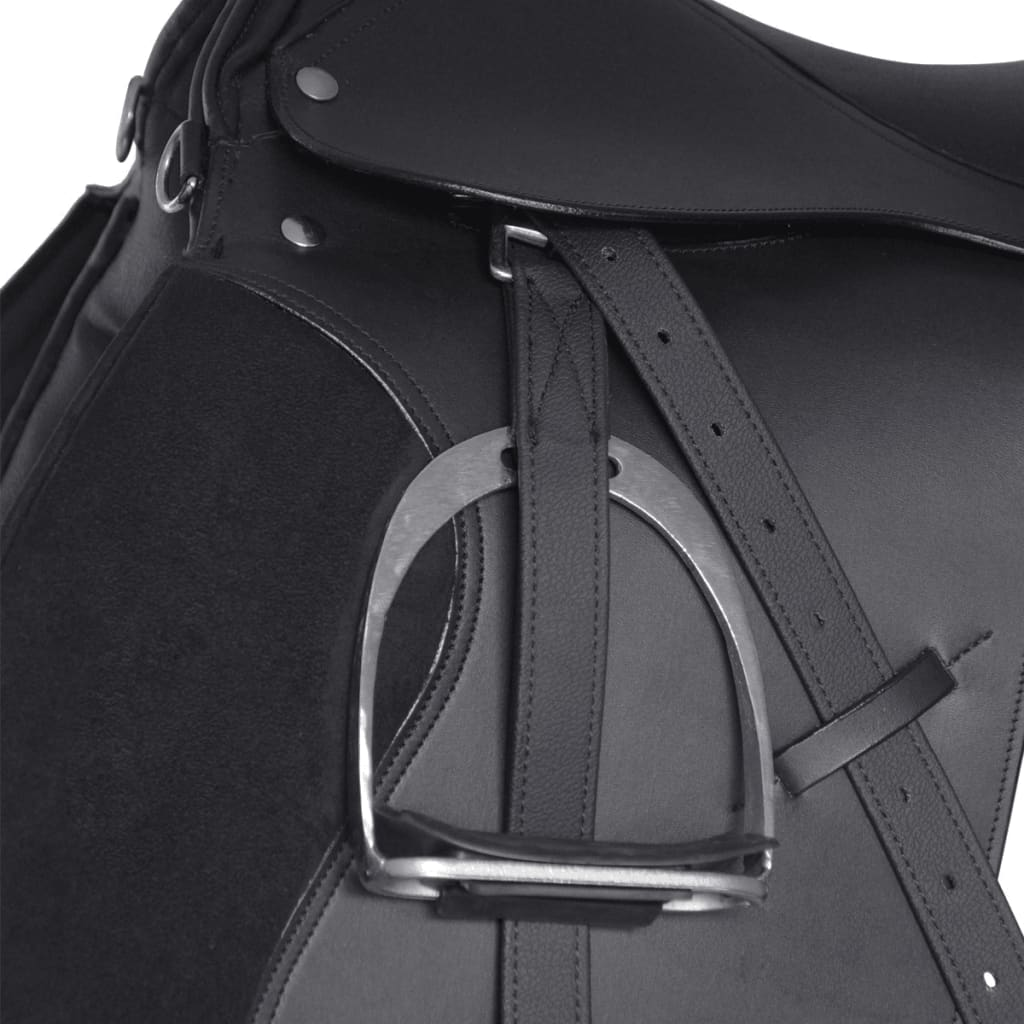 Horse Riding Saddle Set 17.5" Real Leather Black 18 cm 5-in-1