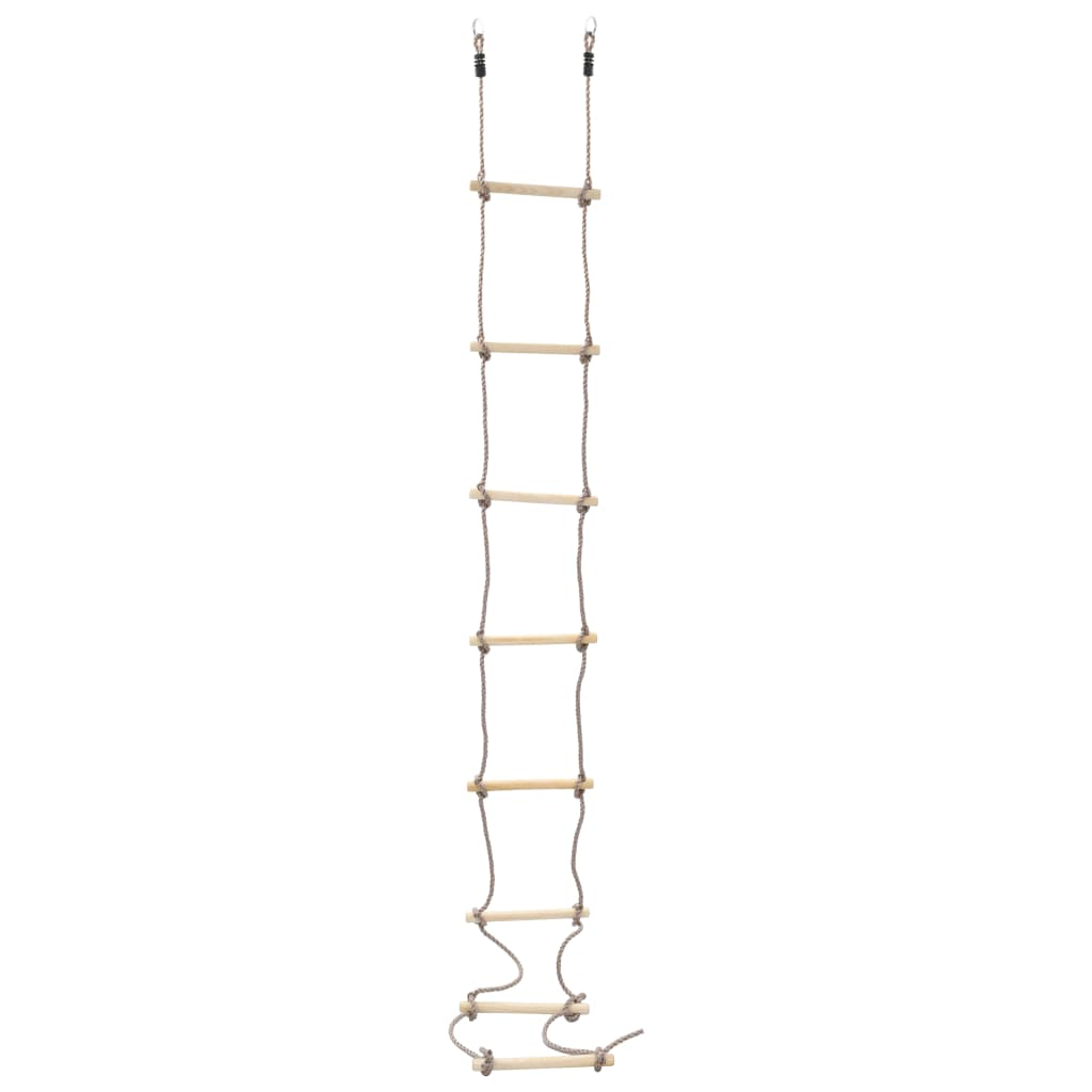 This wooden rope ladder with 8 steps will ensure your kids have great fun! With solid pine wood frame and PE rope, the rope ladder is study for your little one to enjoy climbing up and down. The ladder is weather resistant, therefore is suitable for garden and backyard. Additionally, the climbing ladder has two rope ends with suspension rings for attachment to a swing or a play tower. The ladder is suitable for kids over 3 years old. Please make sure the rope ladder is used under the direct supervision of an adult.